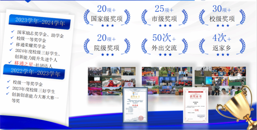 入学以来我积极向党组织靠拢,坚定理想信念,扎根于为同学服务中。积极参与社团工作、组织志愿开展。加入了“数信排球社”“X-model模特社”等3+社团,数字乡村实训班、矩阵短视频实训班等8+培训班,也担任过“排球社”干部、“校篮球队”文员、“移綦向蓝天·应急救援”志愿服务专项支队支队长等。在任队长时,带领50余人组织活动50+,如“志”热青年·当燃不让志愿体验活动、“水域安全智引,实操技能精研”防溺水宣讲、“应急志愿齐演练,绳索技能精应用”实操演练等。个人参与活动达300+,累计服务人数20000+,获中国智能产业博览会“优秀志愿者”、綦江区第二届运动会“优秀志愿者”等,公众号推广25+,阅读量超5000+,所领团队获评多次校级表彰,个人也连续两年获得“返家乡”社会实践活动先进个人、连续三年荣获“大学生一起云支教”志愿者称谓...期间,曾跟随“小红砖”党史学习教育团前往沙坪坝歌乐山开展“三下乡”活动,与20人一同探索红色革命基地并打造电商公益账号,在首次科普采访直播中,点赞破万且人数高达1562人,用实践传承红色基因,用科技助力农村产业。