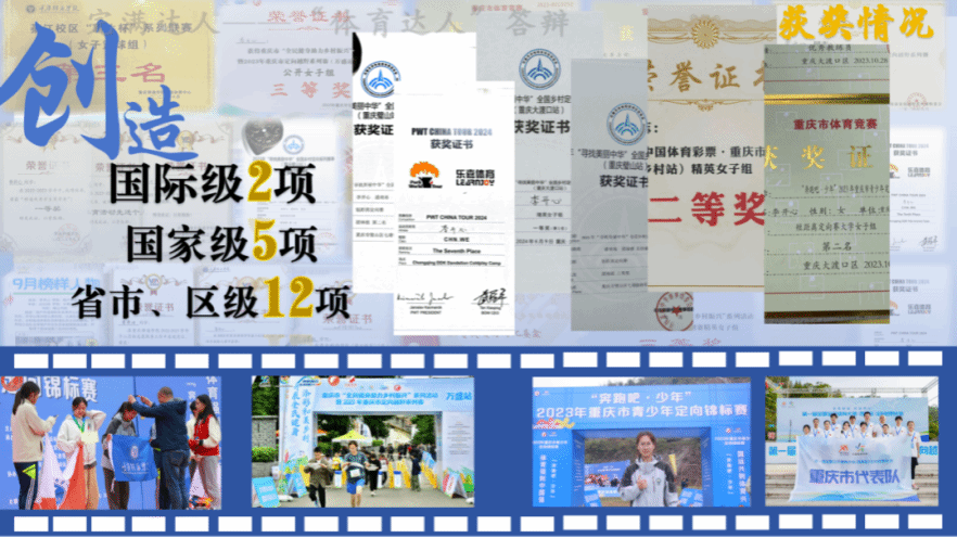 在完满教育的指引下,李开心坚定地选择了竞技体育作为自己的专项发展道路。作为校户外运动队队长,她深知自己的责任与担当。不仅要做好积极正面的带头作用,还要协助教练带领团队“征战”各大赛场。在校还担任竞技体育中心营地教育中心助教,协助教练们更好地完成营地教育拓展训练课程,并进行建站、打保护等辅助工作。对李开心而言,追求全面发展,是她成为一名合格完满人的不懈追求。共获国际级荣誉2项、国家级荣誉6项、省市级荣誉12项、校级荣誉28项、院级荣誉6项。其中获2024年重庆市青少年定向锦标赛百米定向赛高校女子组第一名、2024年“寻找美丽中华”全国乡村定向越野系列赛精英女子组第一名、2024年PWT世界定向精英巡回系列赛大渡口站 国际第八名(国内第七名)以及义渡古镇站国内第十名等奖项。这些荣誉和奖项不仅是对李开心个人能力的肯定,更是对她所在学校“双一流之外的首选大学”这一理念的最好诠释。她用自己的努力和汗水,书写着完满教育的辉煌篇章,也激励着更多同学追求卓越、实现自我。