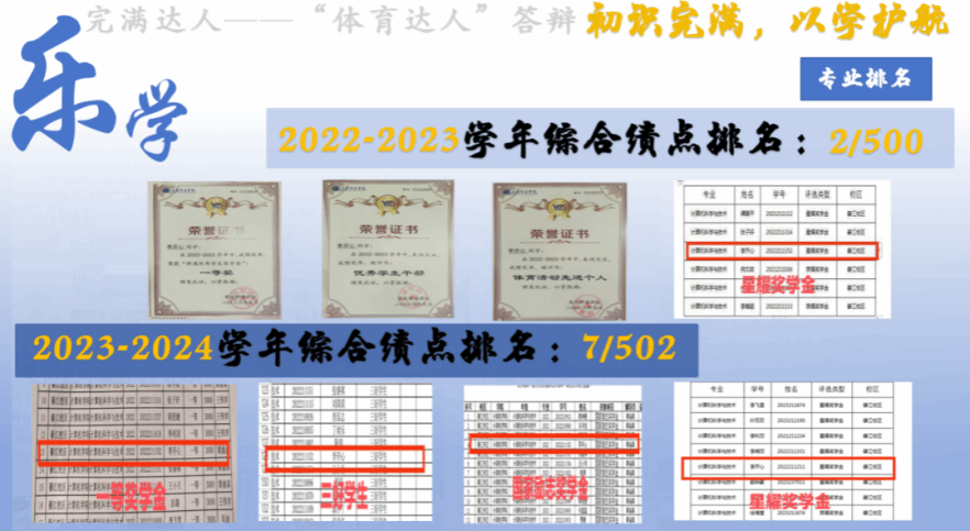 在我校“四位一体双院制+特色课程”的培育下,李开心不仅注重学术成就,更追求个人全面发展。2022-2023学年智育成绩排名2/502、2023-2024学年智育成绩排名7/502,荣获移通优秀学生奖学金一等(2次)、完满教育奖——星耀奖学金(2次)、国家励志奖学金。同时被评选为校“三好学生”、“优秀学生干部”、“精神文明先进个人”、第二季完满达人——体育达人以及市级“体育活动先进个人”等各类荣誉称号。这些荣誉的背后,是她日夜不懈地努力和汗水的累积。完满教育提倡挑战自我、超越极限,她深知只有通过不断的努力和训练,才能提高自己的技能水平。她积极考取篮球裁判三级证,全国攀岩社会指导员初级证以及红十字救护员证,这些证书是她完满教育之路上的见证。